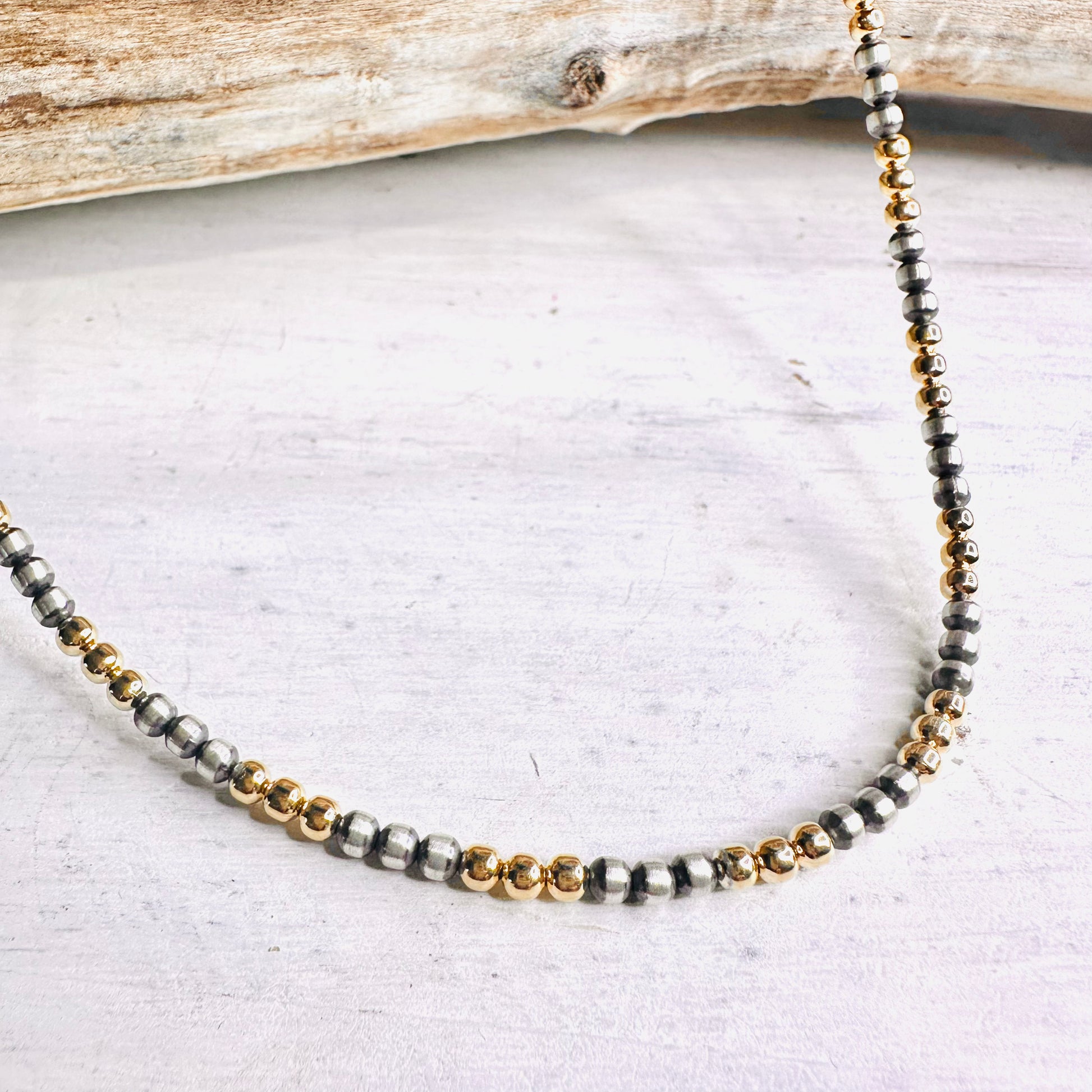 4mm Sterling & 3mm 14K Gold Beaded Necklace