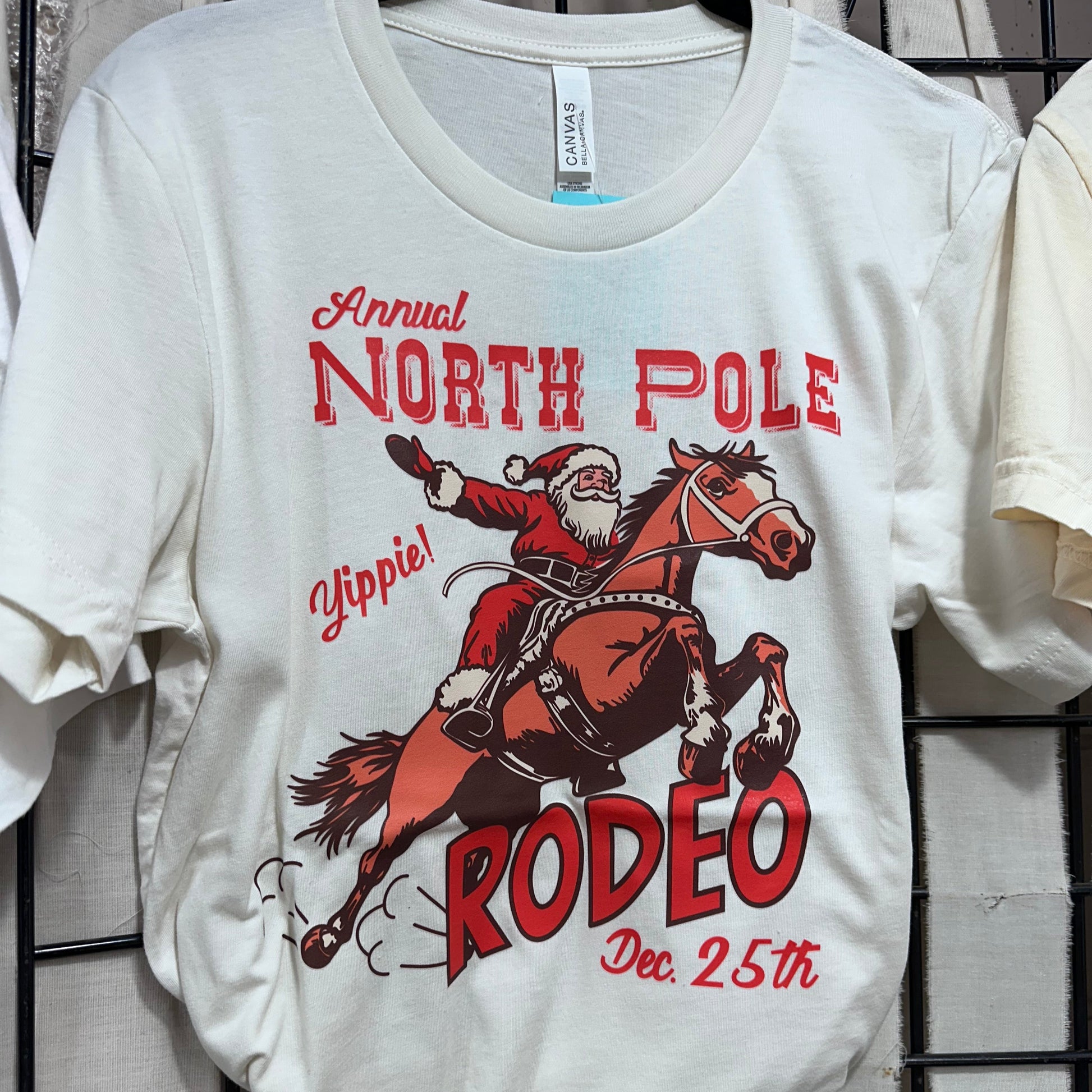 Annual North Pole Rodeo Graphic Tee printed on a Super Soft Vintage White Tee