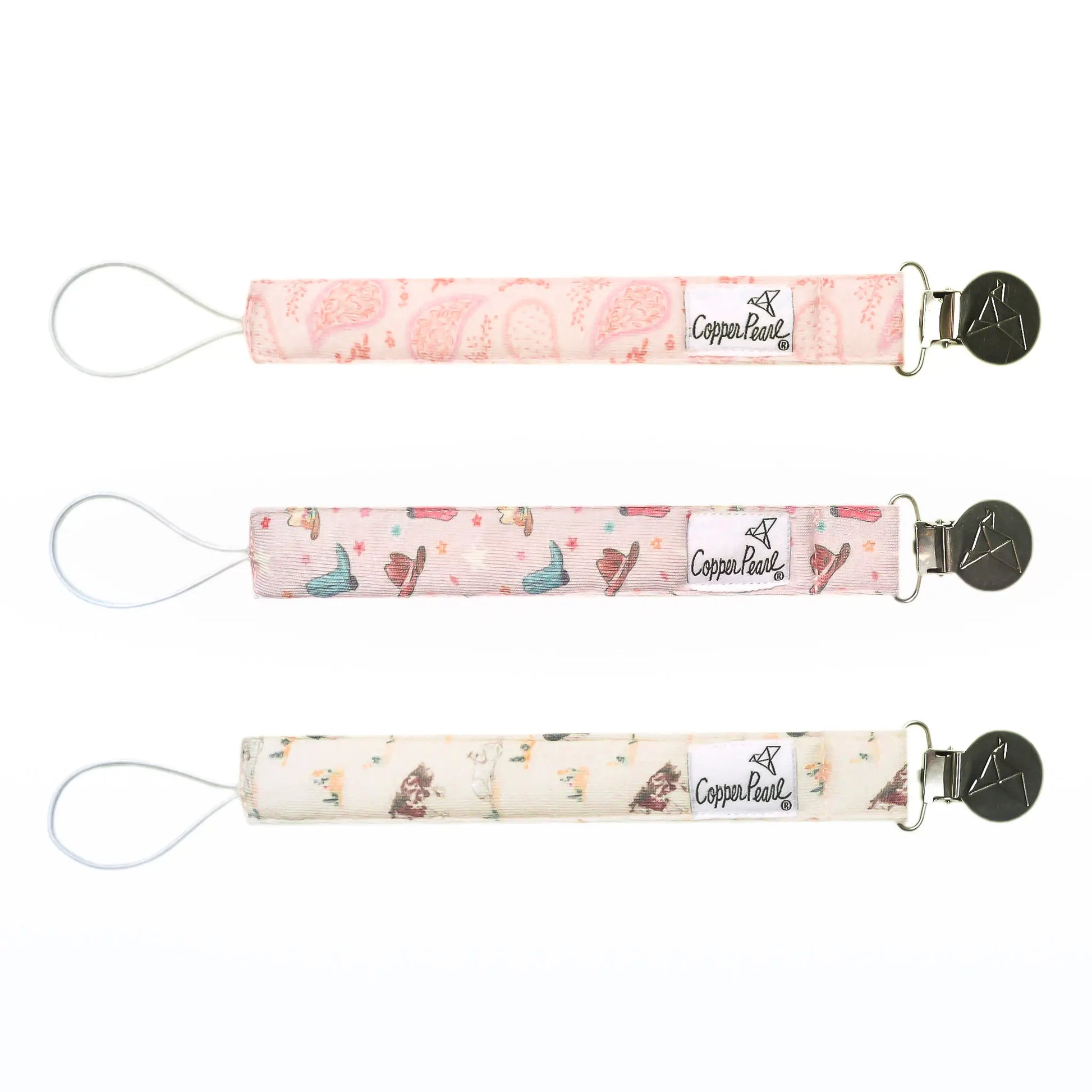 A chic way to keep baby's pacifier close at hand. Offering the ultimate blend of fashion and function, our unique Binky Clip features a premium knit strap lined with absorbent fleece to help soak up drool. Simply attach Babys pacifier or teether to one end, then fasten the stainless-steel clip to clothing, blankets or baby gear. No more floor drops or pacifier pick-ups!