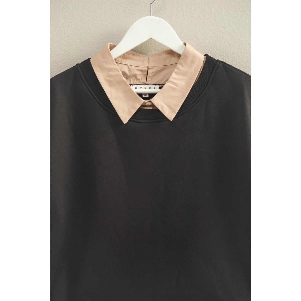 Embrace a blend of preppy charm and relaxed sophistication with this delightful shirt and sweatshirts ensemble. The top features a soft, jersey-like fabric accented with a tan Peter Pan collar that enhances its elegance. Its relaxed silhouette ensures comfort and effortless style, making it a versatile choice for various occasions.