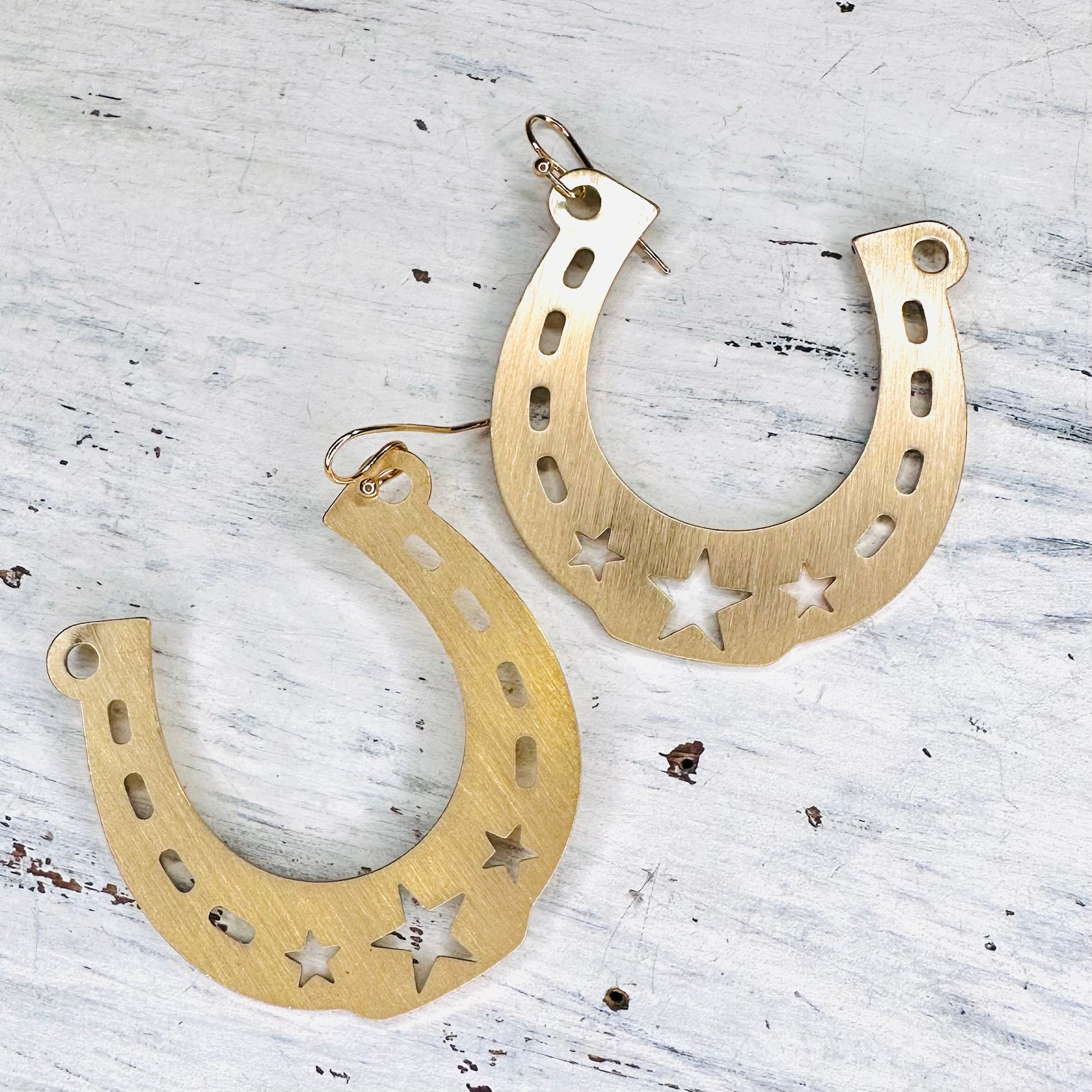 Gold Cut Out Horse Shoe Earrings