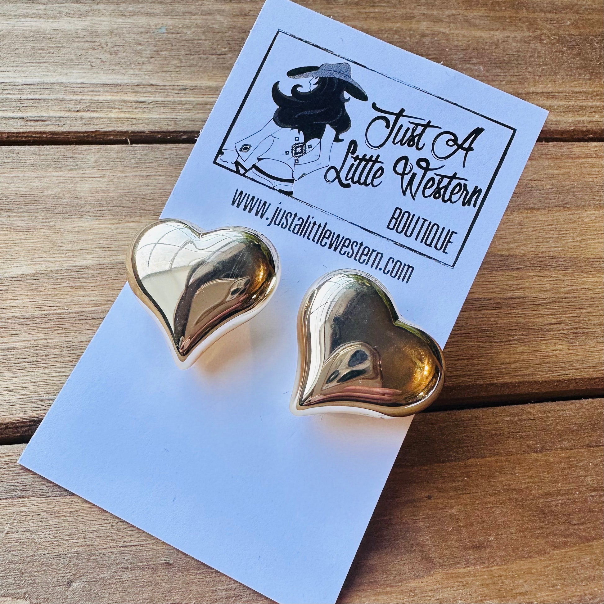 Gold Puff Heart Post Earring