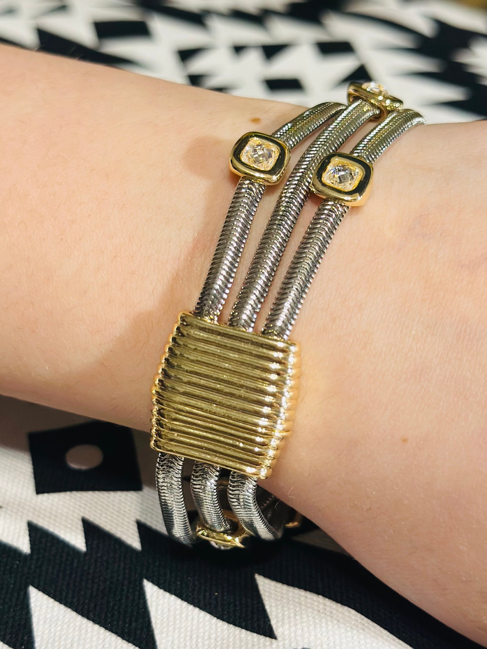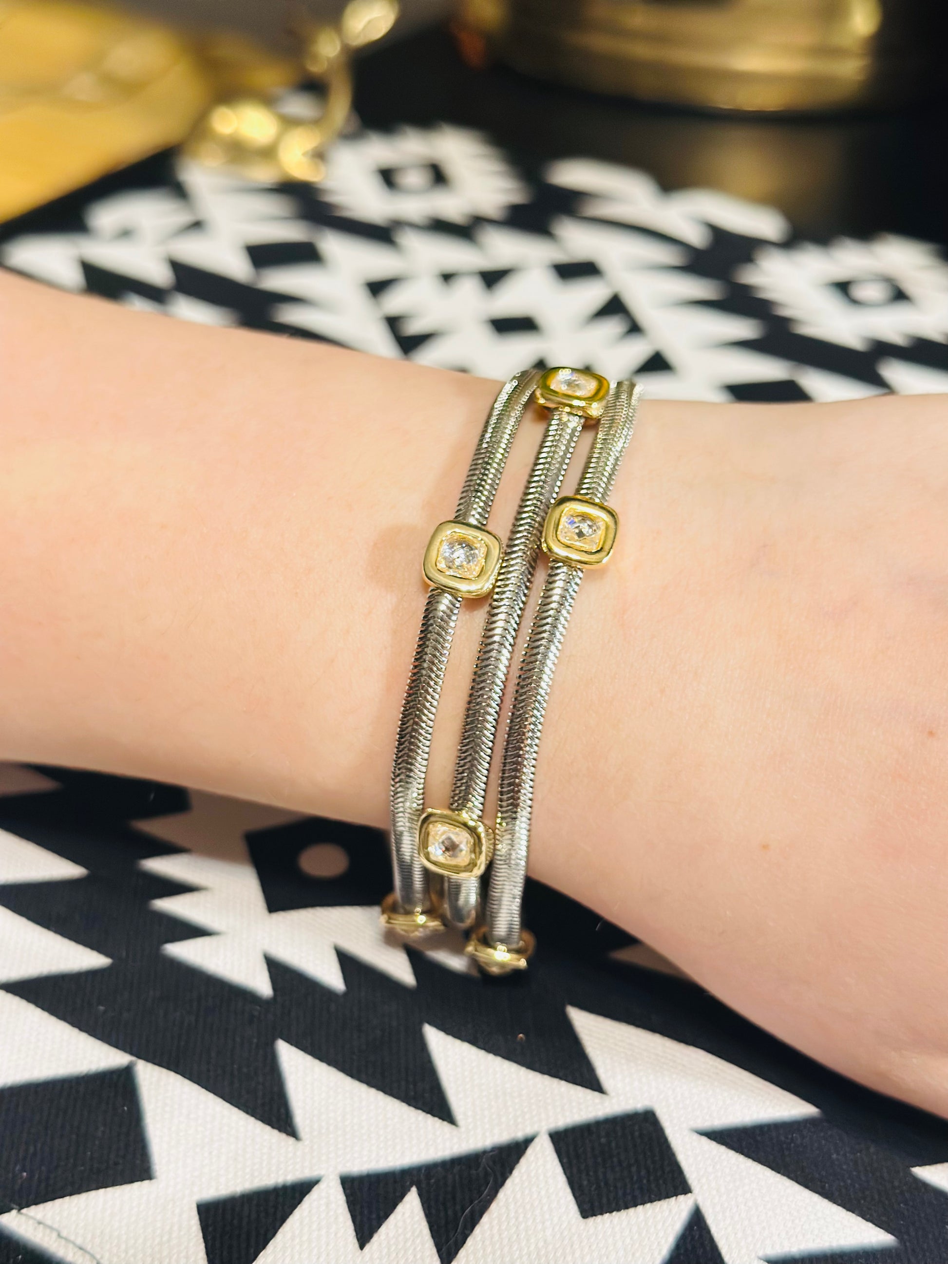 Gold, Silver, & CZ Multi Slinky Magnetic Bracelet