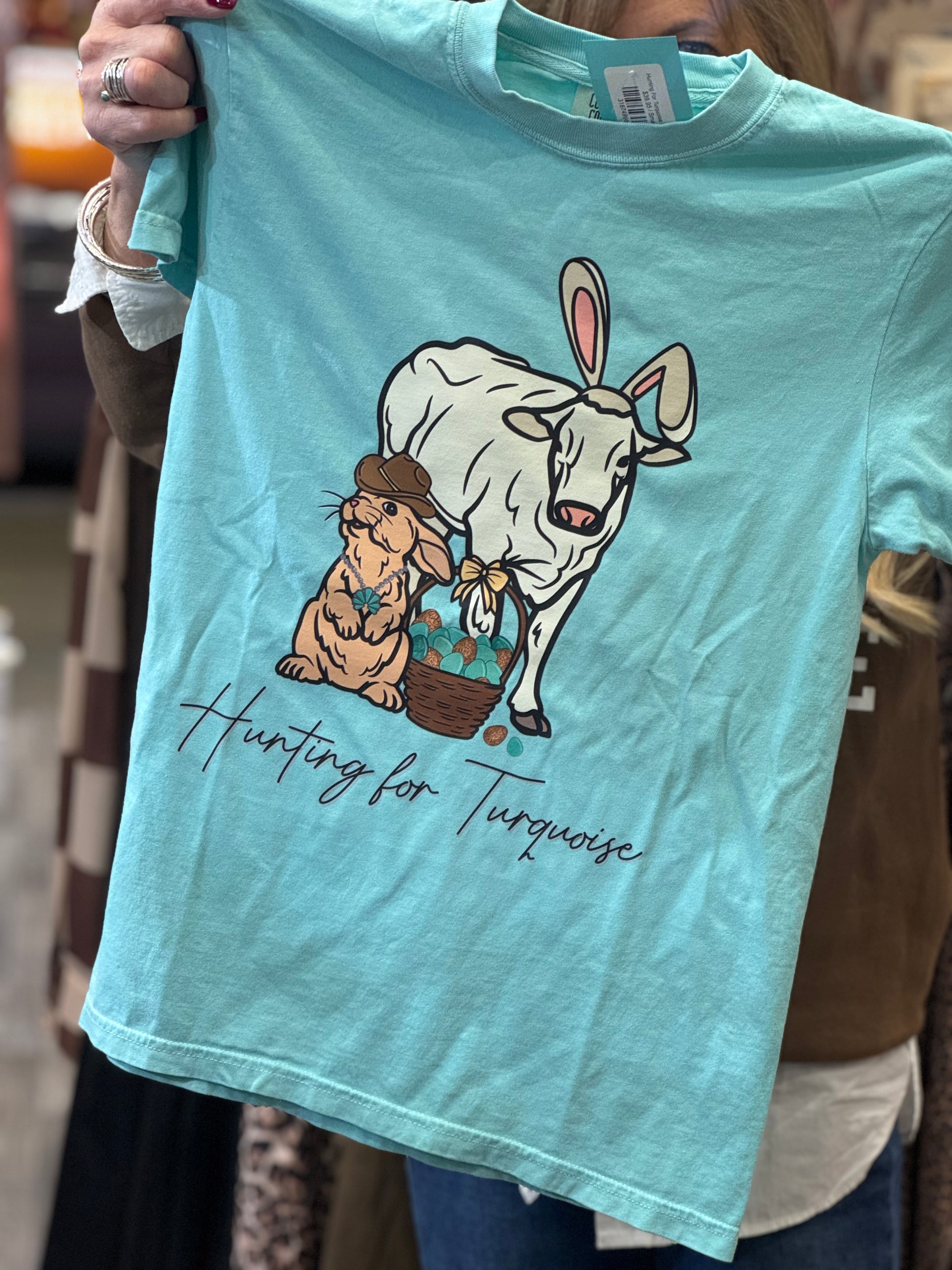 Hunting for Turquoise Cowbunny Graphic Tee printed on a Chalky Mint Comfort Colors Tee