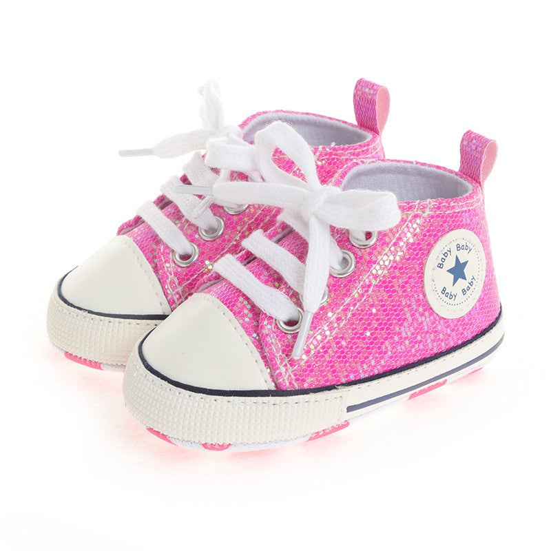 Soft Sole Infant Glitter Sneaker in Hot Pink