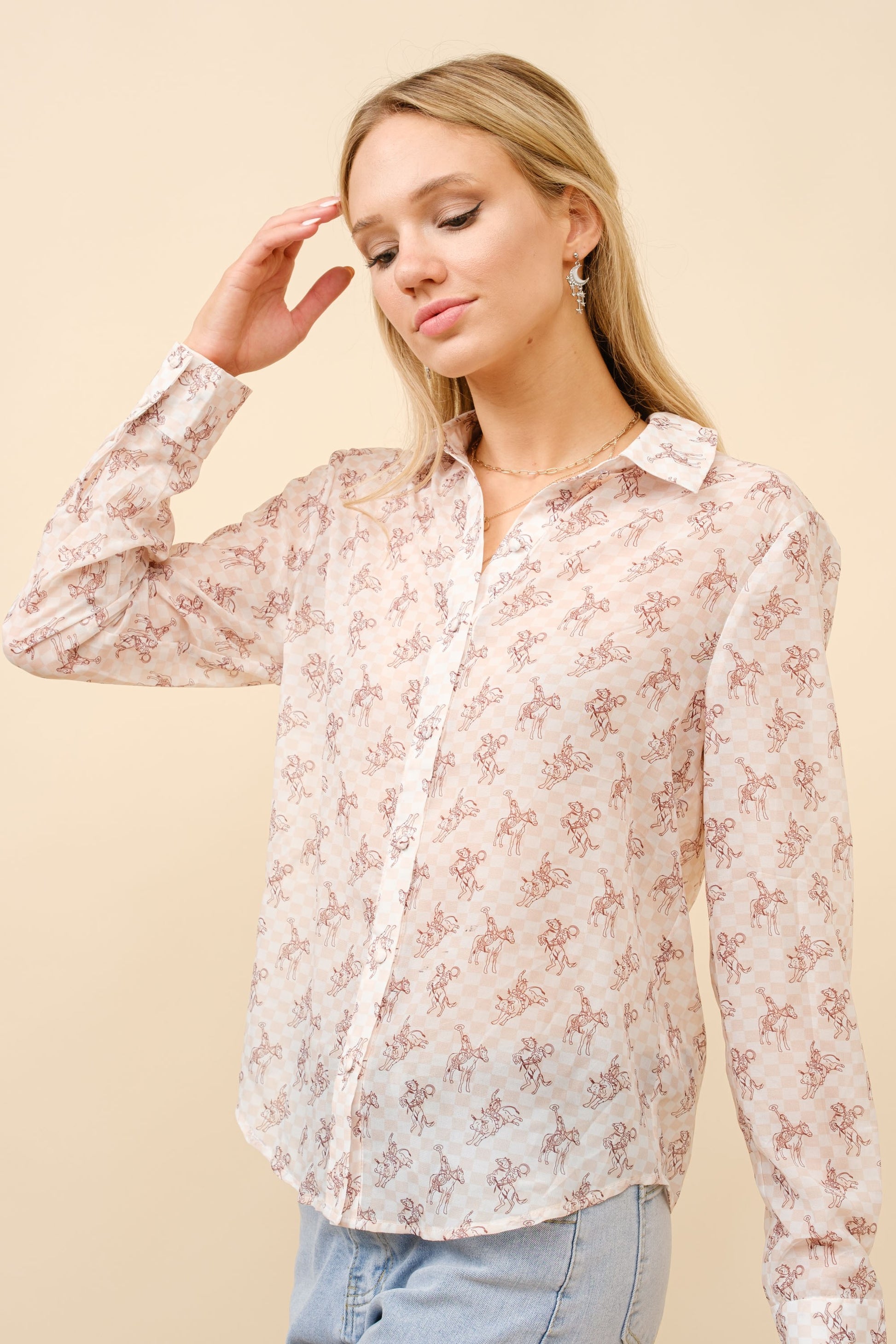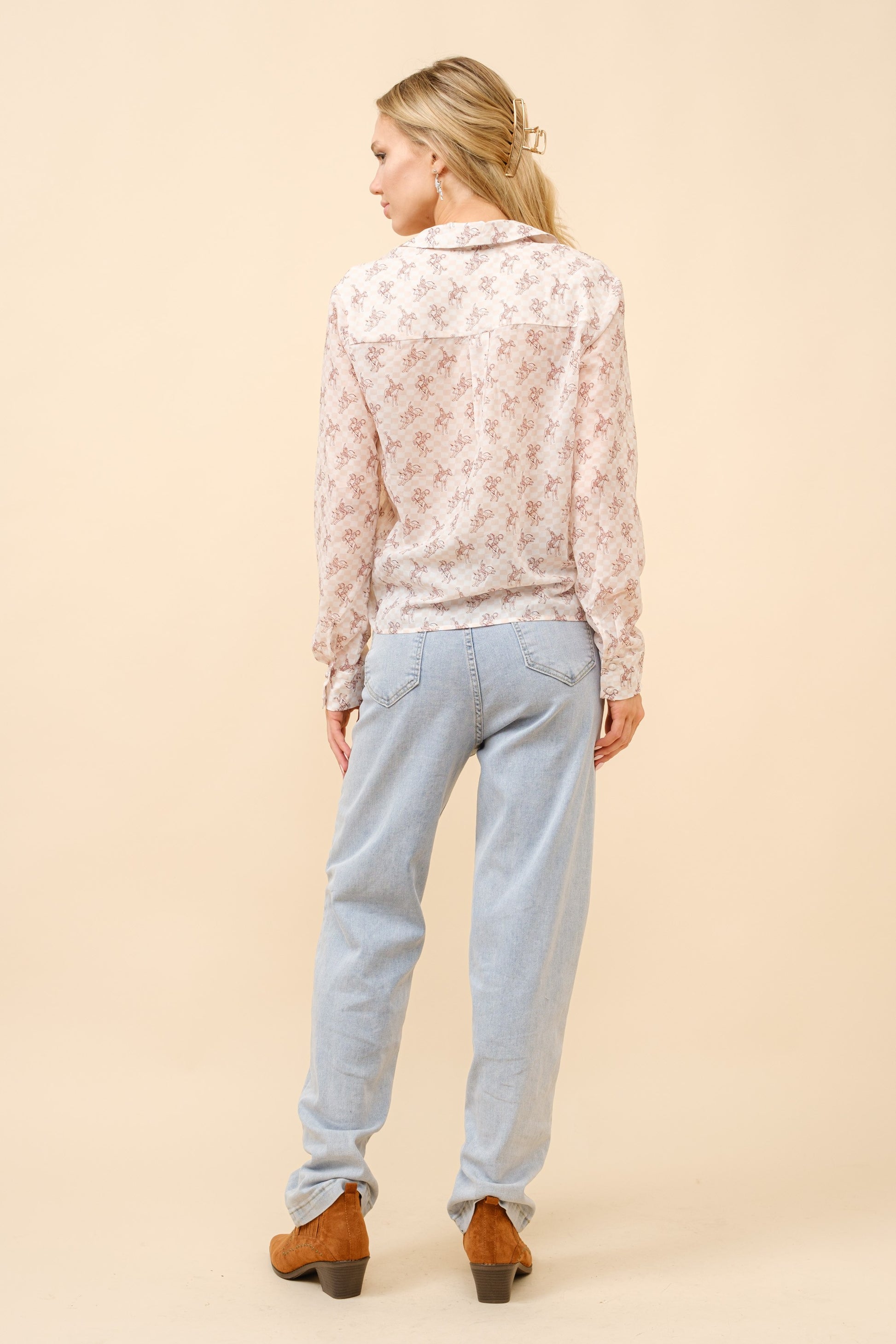 Our signature button-down blouse is back with an exquisite western