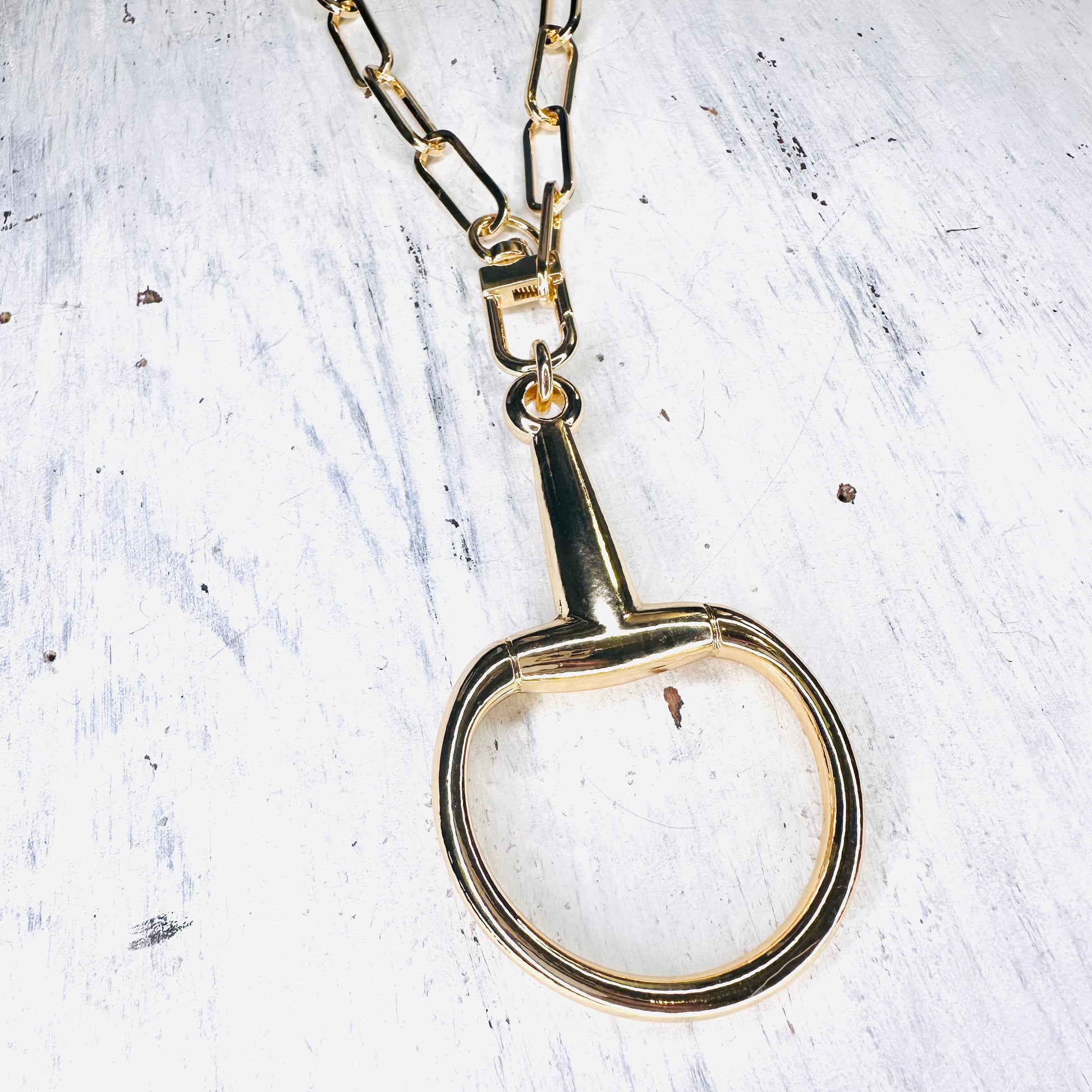 Large Gold Bit Pendant & Paperclip Chain Necklace