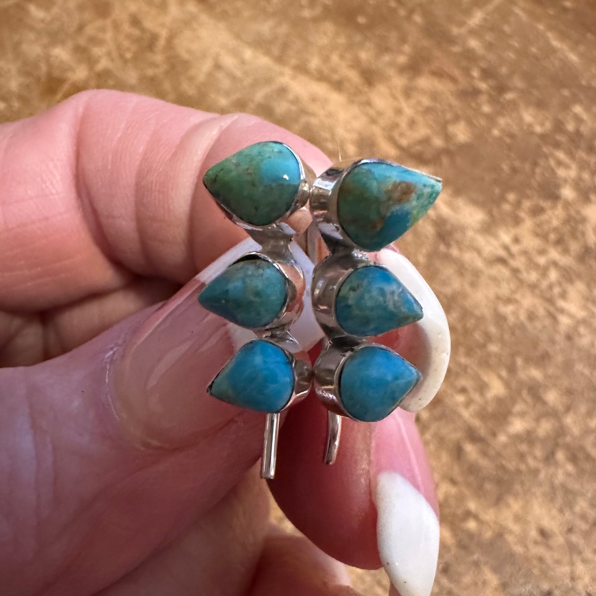 Sterling Silver & Turquoise Three Stone Earrings